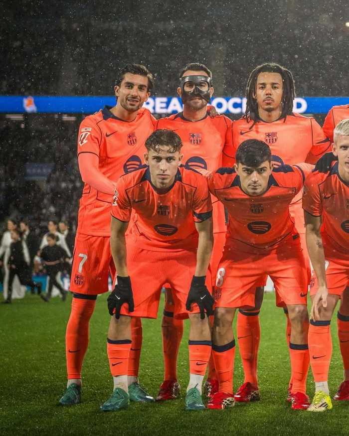 巴萨首发11人合影。#皇家社会2比1巴萨##西甲#