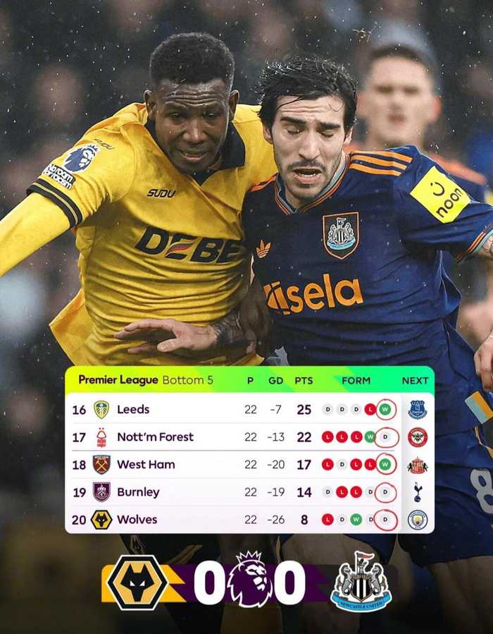 英超第22轮,狼队主场0-0战平纽卡斯尔联队。至此,狼队已经连续5场各项赛事保持不败(4场英超、1场足总杯)。